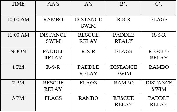 Welcome to the Capitola Junior Lifeguard Challenge! The competition will begin promptly at 10:00 am. It is suggested the teams arrive by 9:00 am to set up. An instructor meeting will take place at the scoring tent at 9:30. We have scheduled one hour per event so things should not be rushed, but it is important that instructors have their guards at the venues on time.