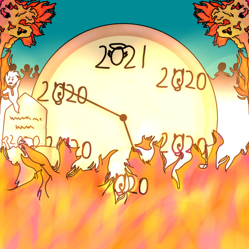 The inspiration for this piece was that while all these horrible, terrible, no-good, very bad, stink-stank-stunk stuff is going on, we`re just looking to 2021 as if it will immediately solve all of our problems.