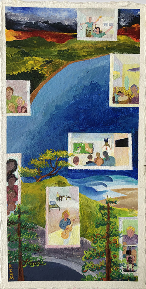 Painting is always a learning experience. I like details, and sculpt layers with the pallet knife. I enjoy playing with composition in colorful interesting ways. I have been painting small again for a number of years, and look forward to the larger works where the marks and expression can be more fully explored. Life and living in 2020 has really been an environment for much more thought. Exploration has turned more inward, for many.
