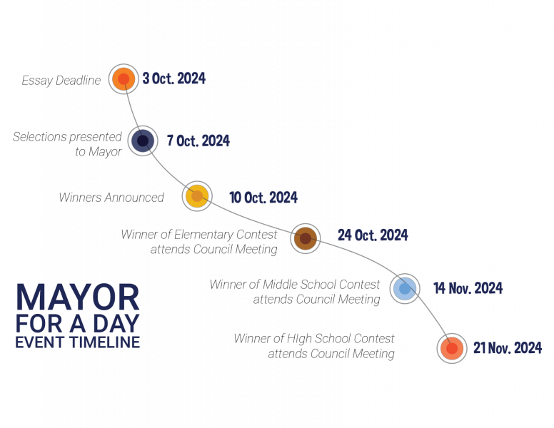 Mayor for a Day. Winners will attend a Council Meeting and share their essay with the public.